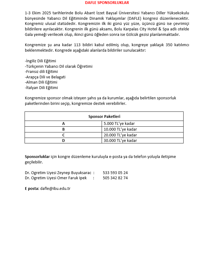 Yabancı Dil Eğitiminde Dinamik Yaklaşımlar Kongresi (DAFLE)